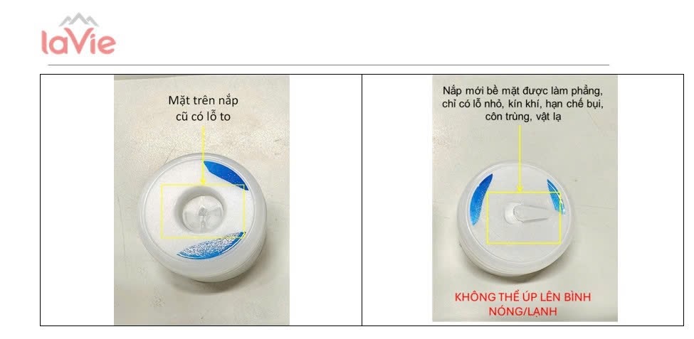 Nắp mới không thể úp lên bình nóng lạnh.